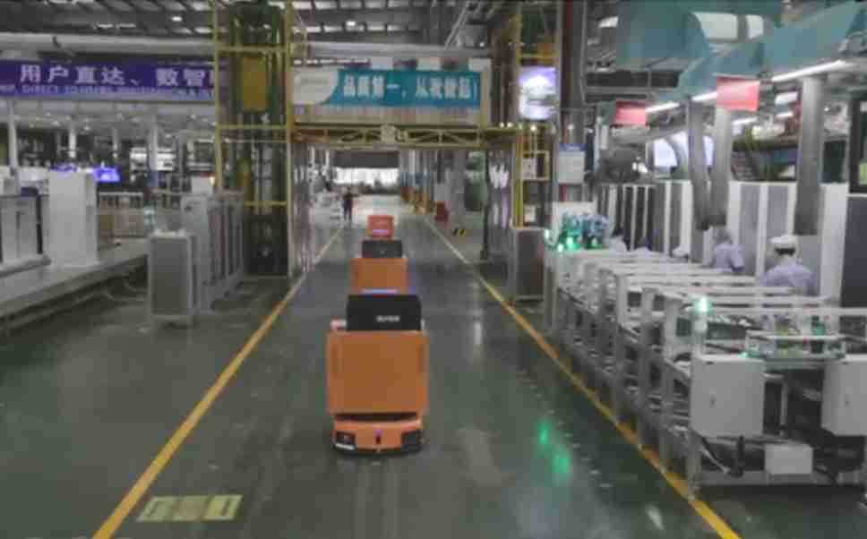 为车载冰箱物流配送打造的智能解决方案,,,包含产中物流通过潜伏举升AMR搬运至线边,,产后成品物流智能仓储,,,流程包含产中物流智能齐套入库,,线边安灯叫料AMR智能配送至线边,,,成品入库、、出库,,通过无人堆高车机器人,,,,智能仓储管理替代人工作业管理,,,实现更高存储、、更高效率、、、、更具柔性化的解决方案。。。